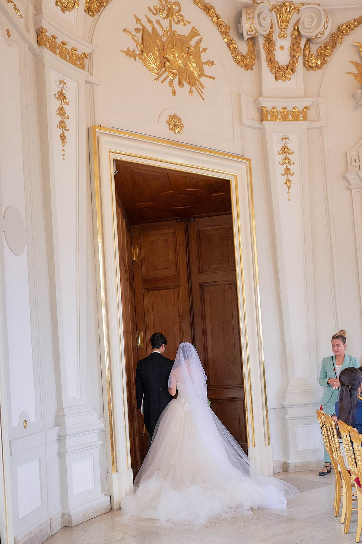 Even as late-September flurries danced through Vienna’s autumn air, nothing could dim the radiant magic of Hitomi and Katsuya’s fairy-tale wedding at the iconic Belvedere Palace. The day began in royal splendor at the neoclassical Palais Coburg, where a radiant Hitomi, transformed by a Parisian makeup artist flown in especially for her, glowed in a gown that seemed woven from dreams, while the city shivered outside.