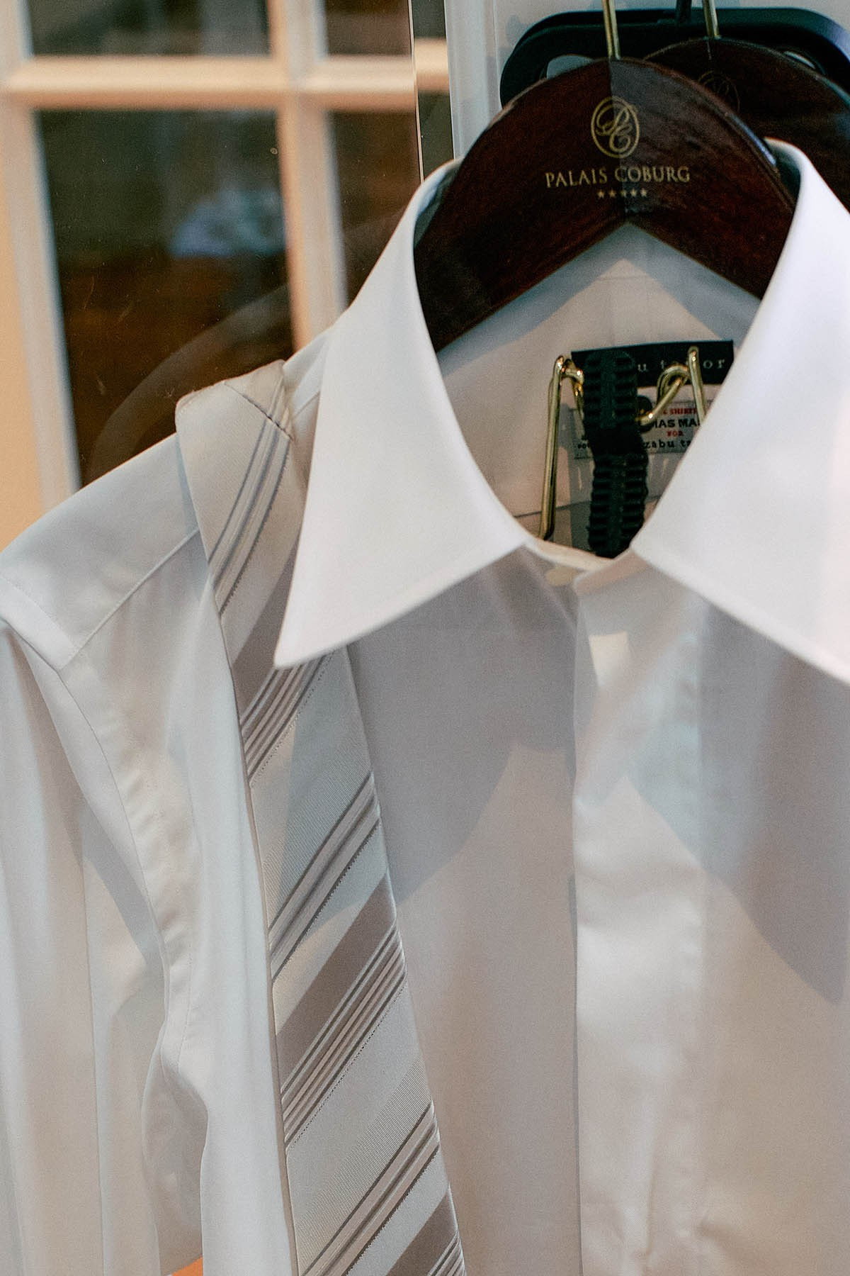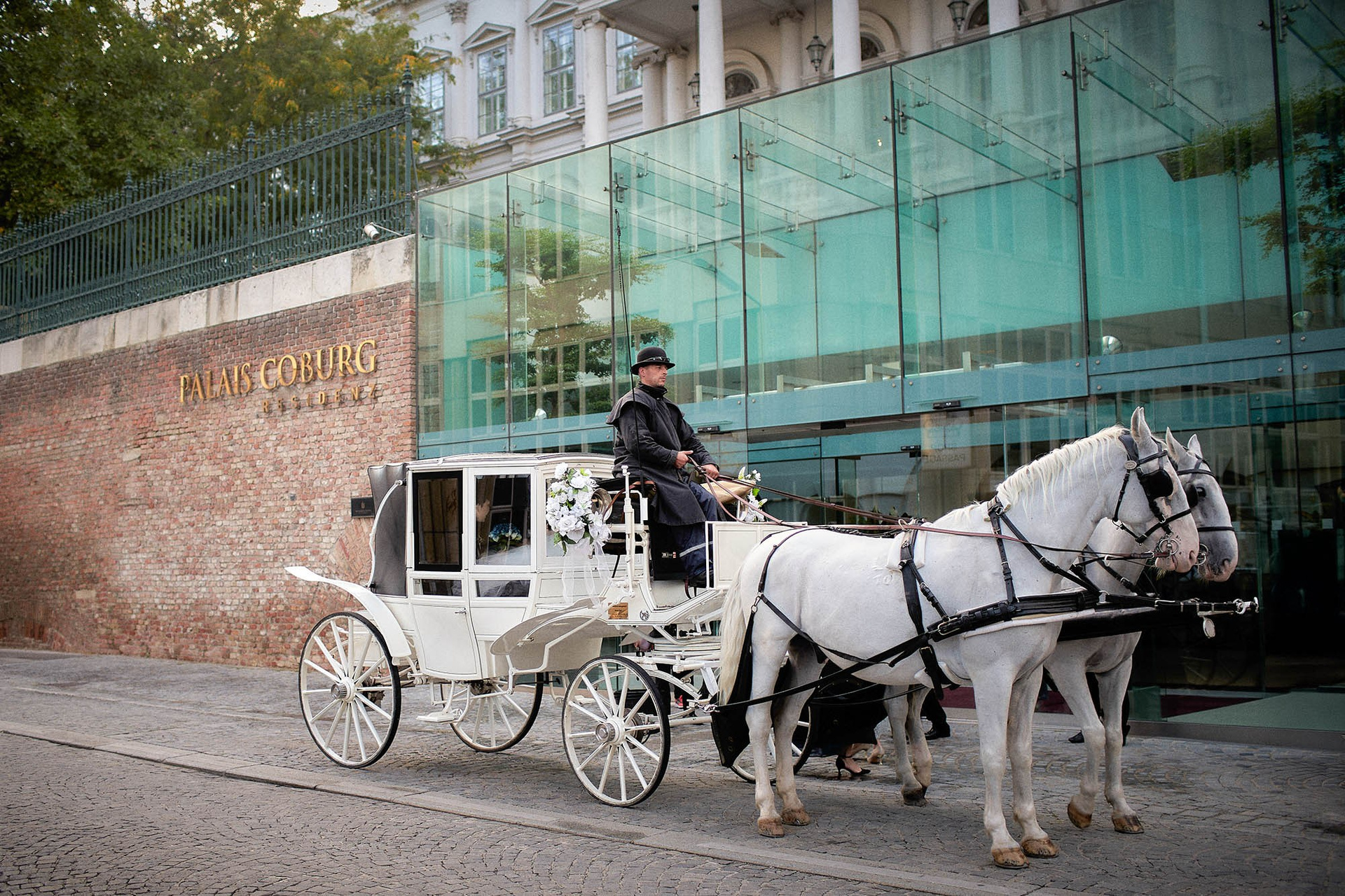 A storybook horse-drawn fiacre carried them through cobblestone streets, escaping to the serene, near-deserted Volksgarten where, wrapped tightly in each other’s warmth, they watched the sunset alone. As night fell back at Palais Coburg, candlelit champagne and a blushing first dance at Clementine restaurant crowned their unforgettable celebration—a timeless testament to love that defies even the coldest whispers of winter.
