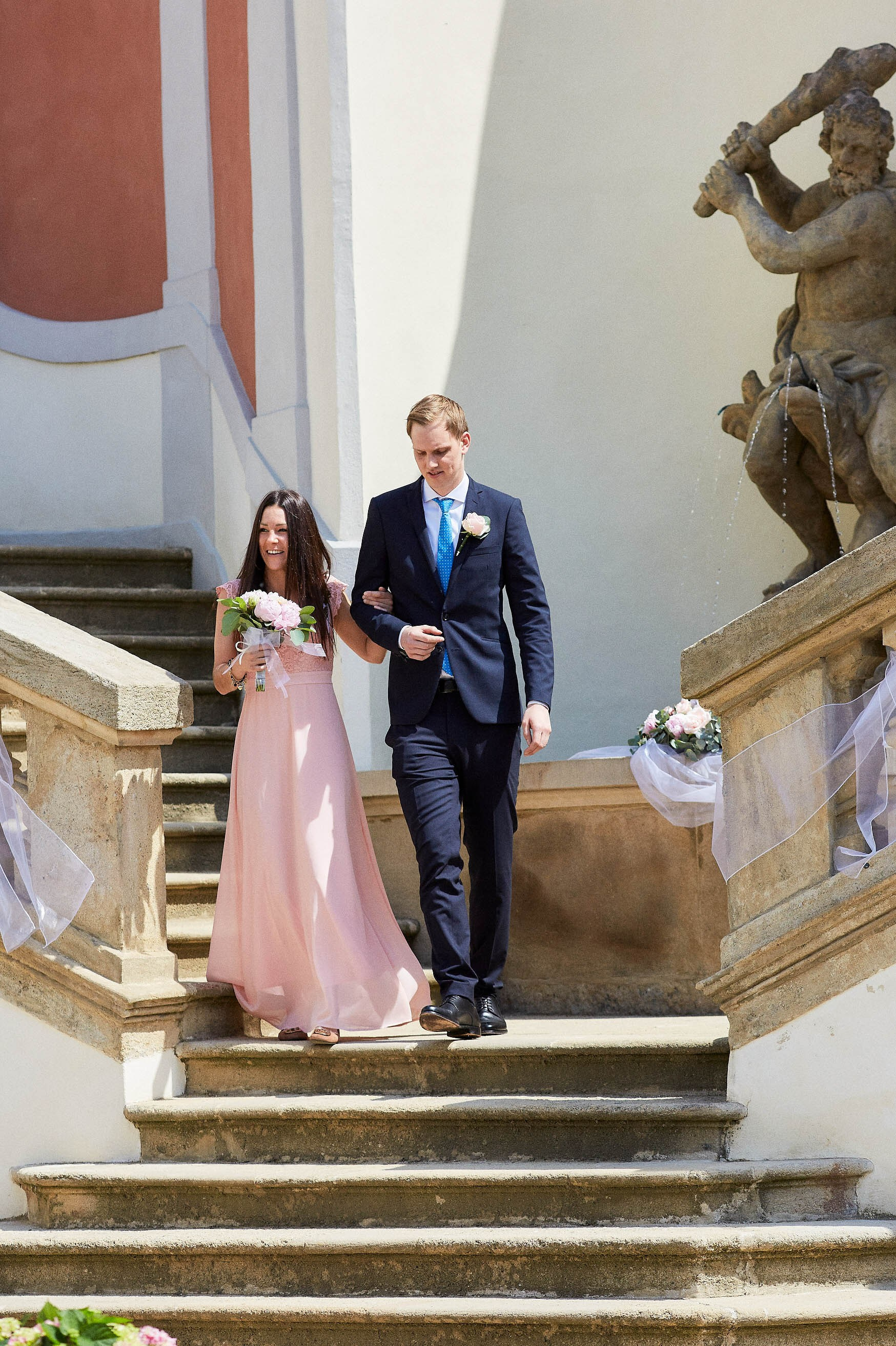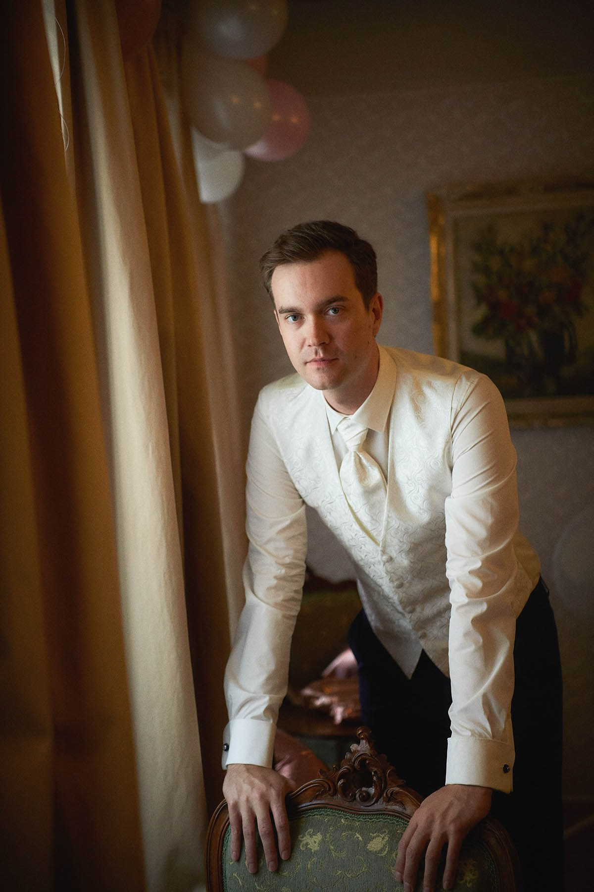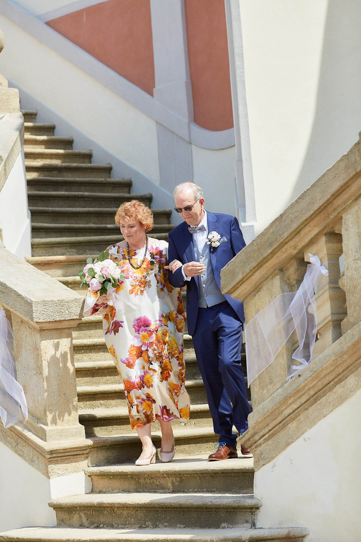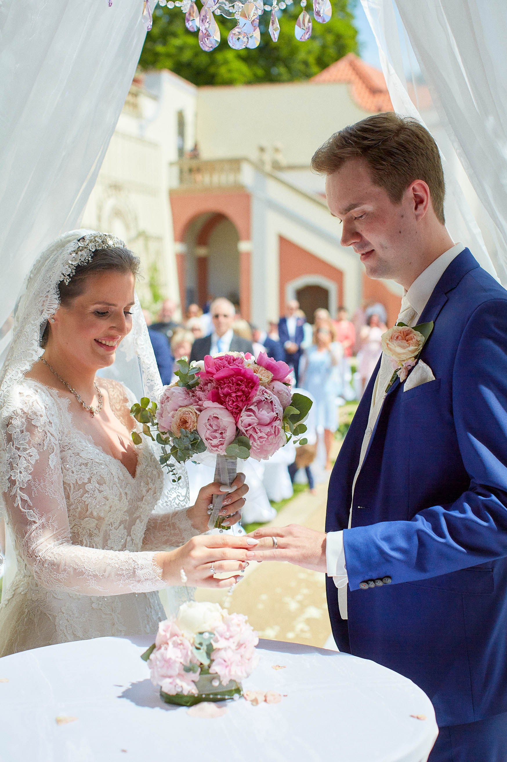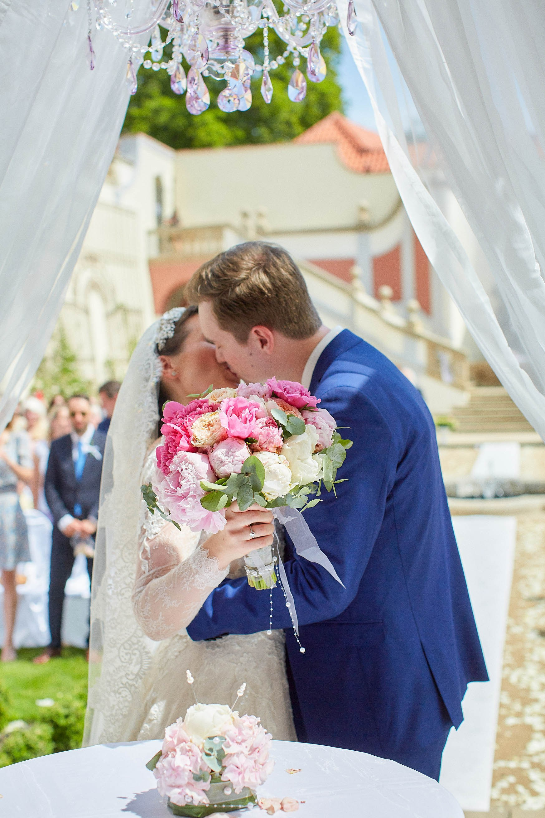 As the celebration moved to the charming Villa Richter, nestled among vineyards with panoramic views over the city, joy filled the air with laughter and toasts. Later, slipping away from their guests, Adéla and Matthias stole intimate moments gazing at the sparkling lights below—a picture-perfect close to their day.