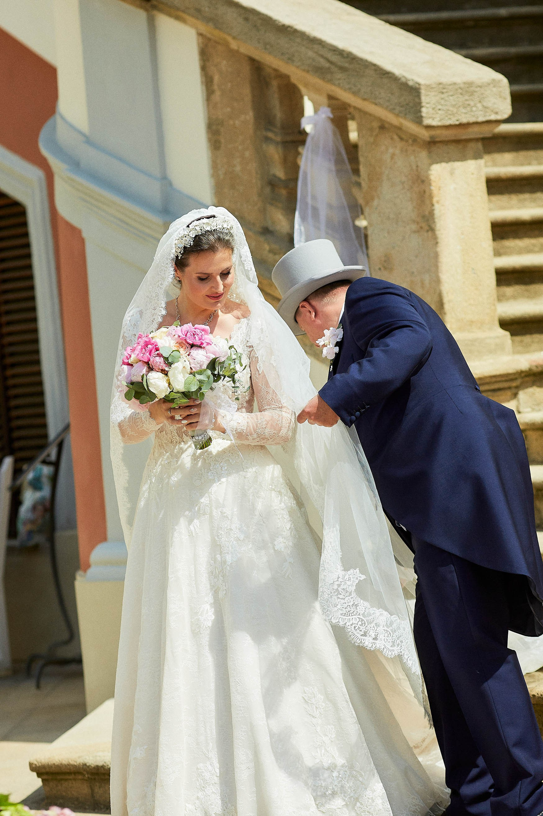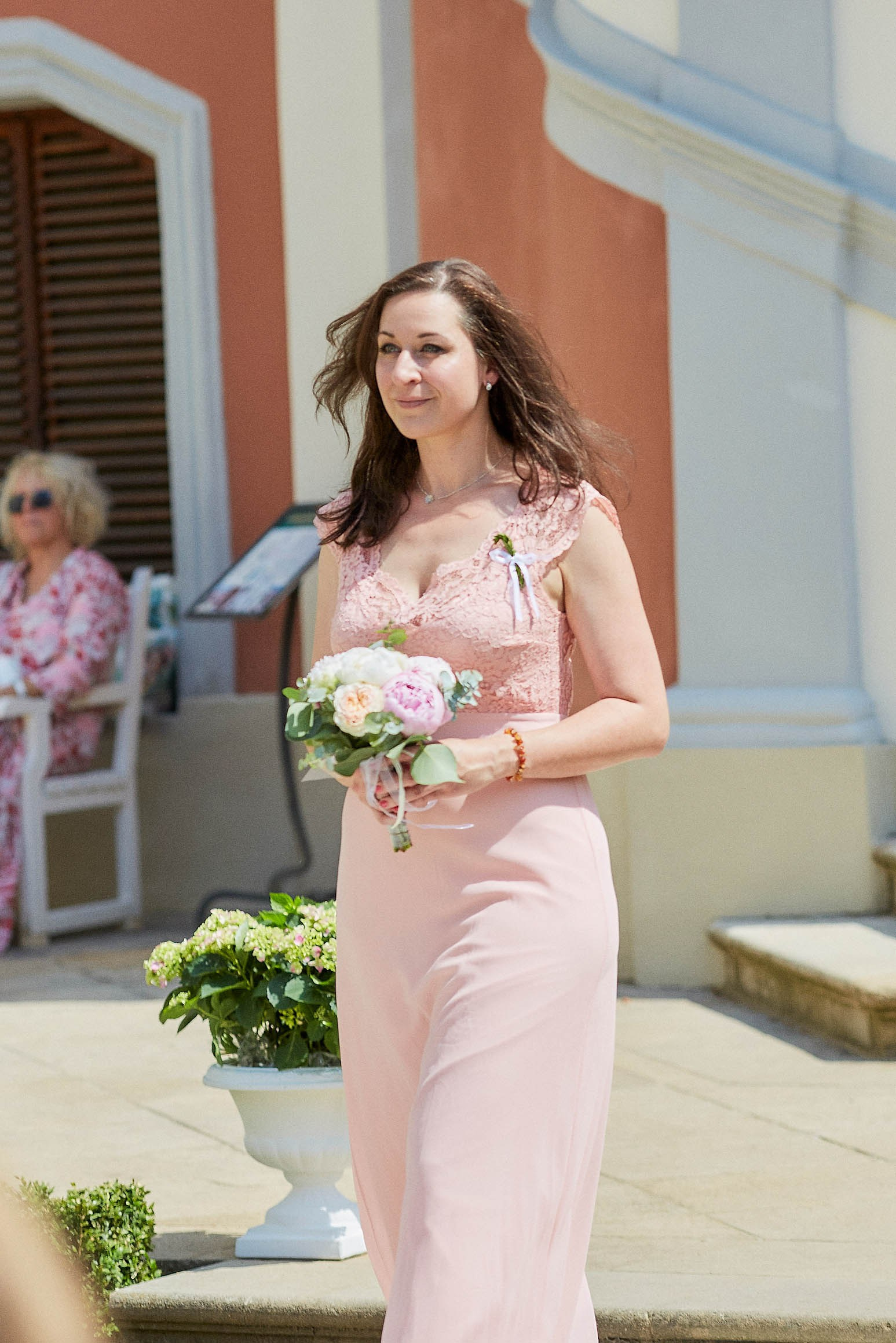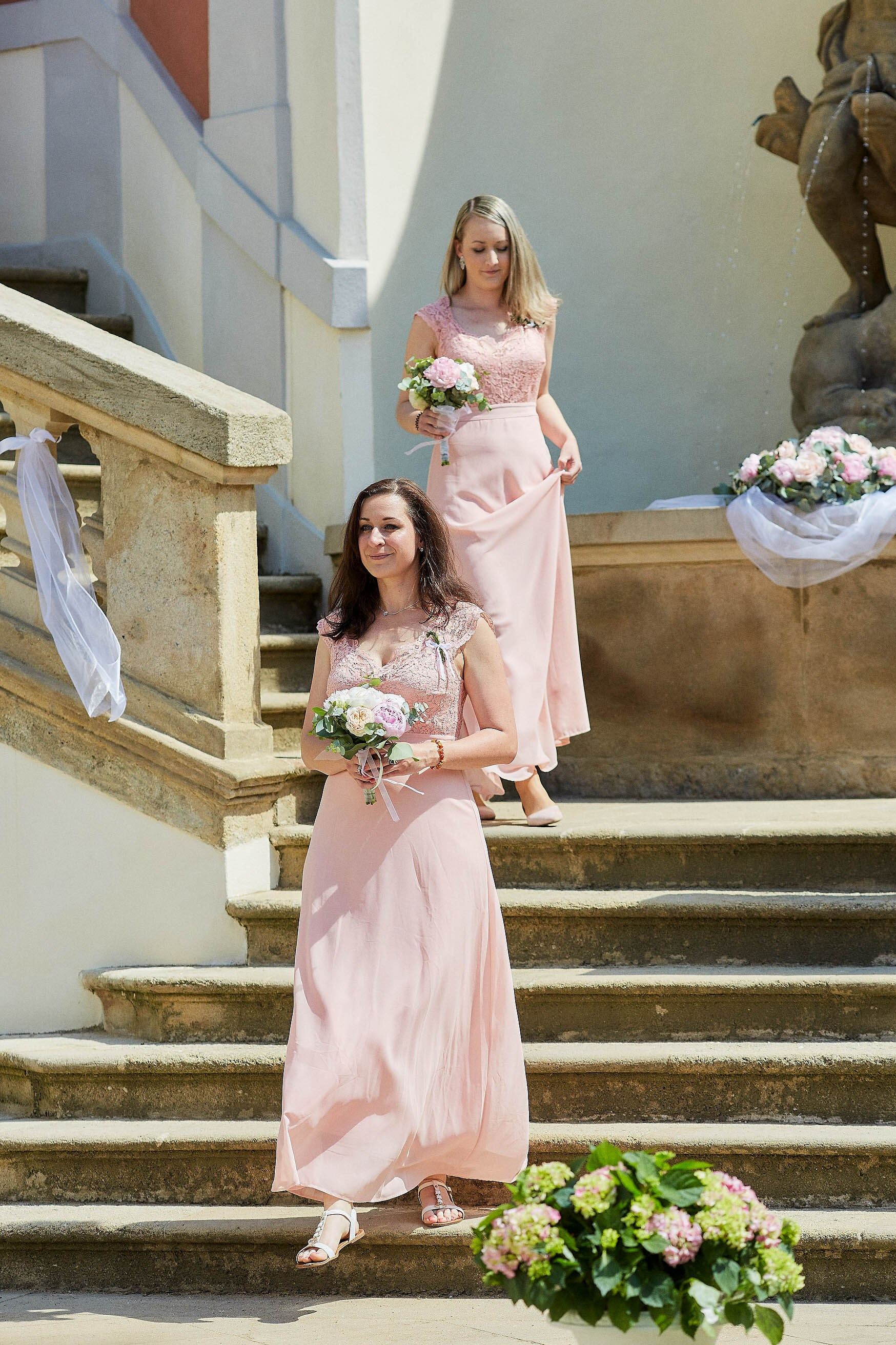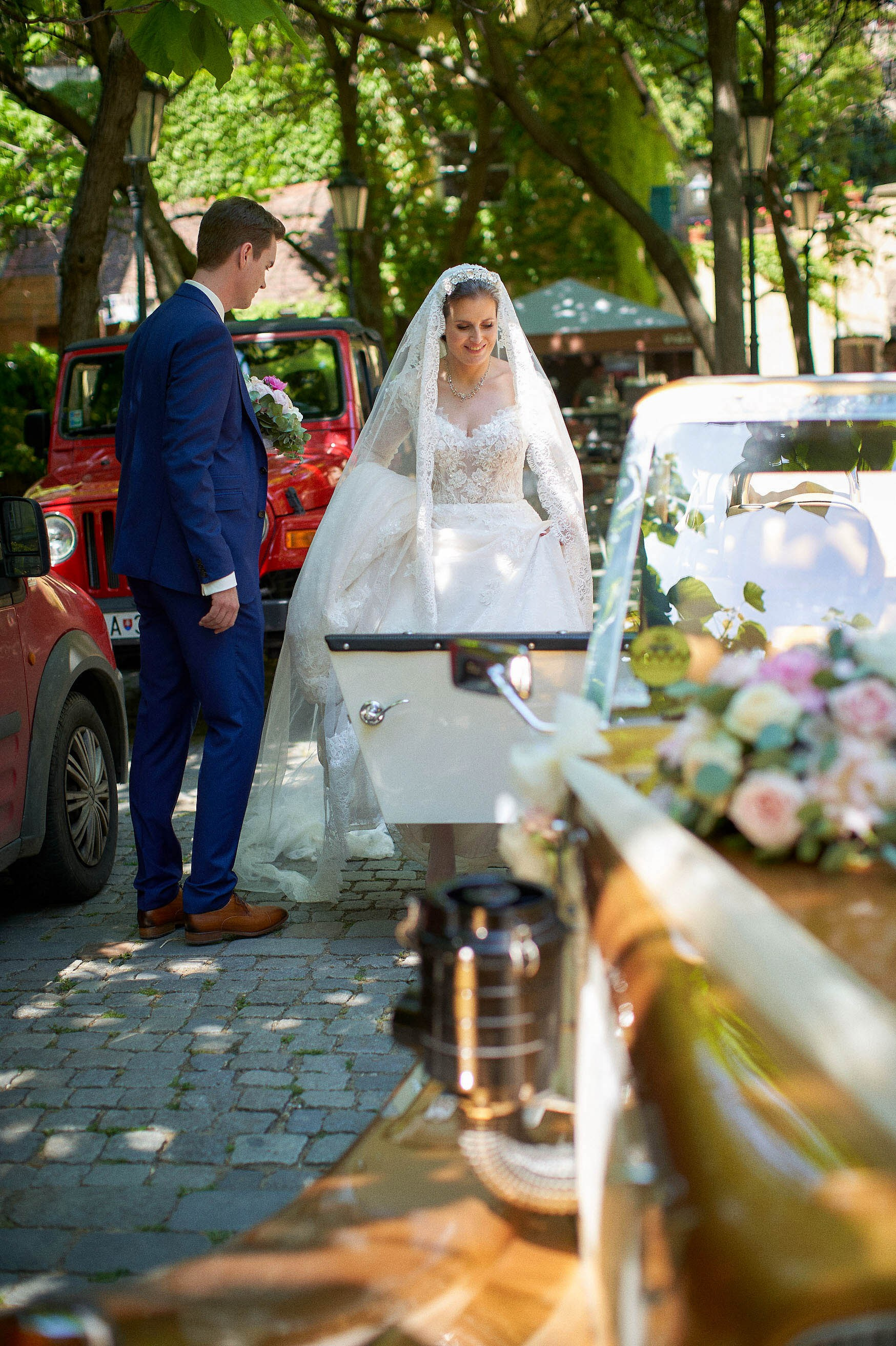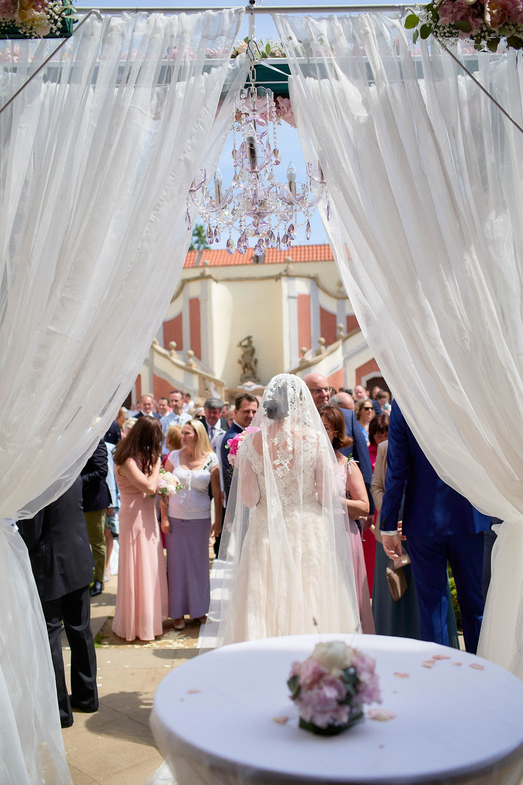 As the celebration moved to the charming Villa Richter, nestled among vineyards with panoramic views over the city, joy filled the air with laughter and toasts. Later, slipping away from their guests, Adéla and Matthias stole intimate moments gazing at the sparkling lights below—a picture-perfect close to their day.
