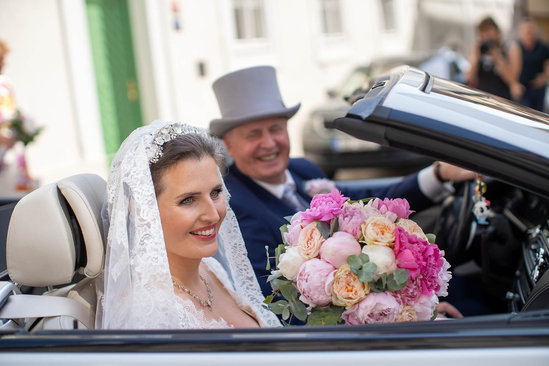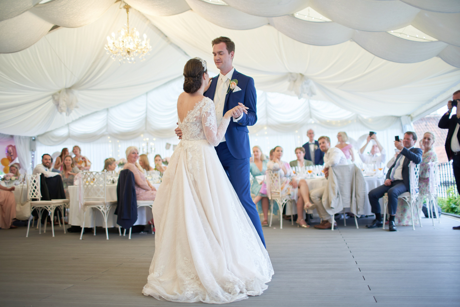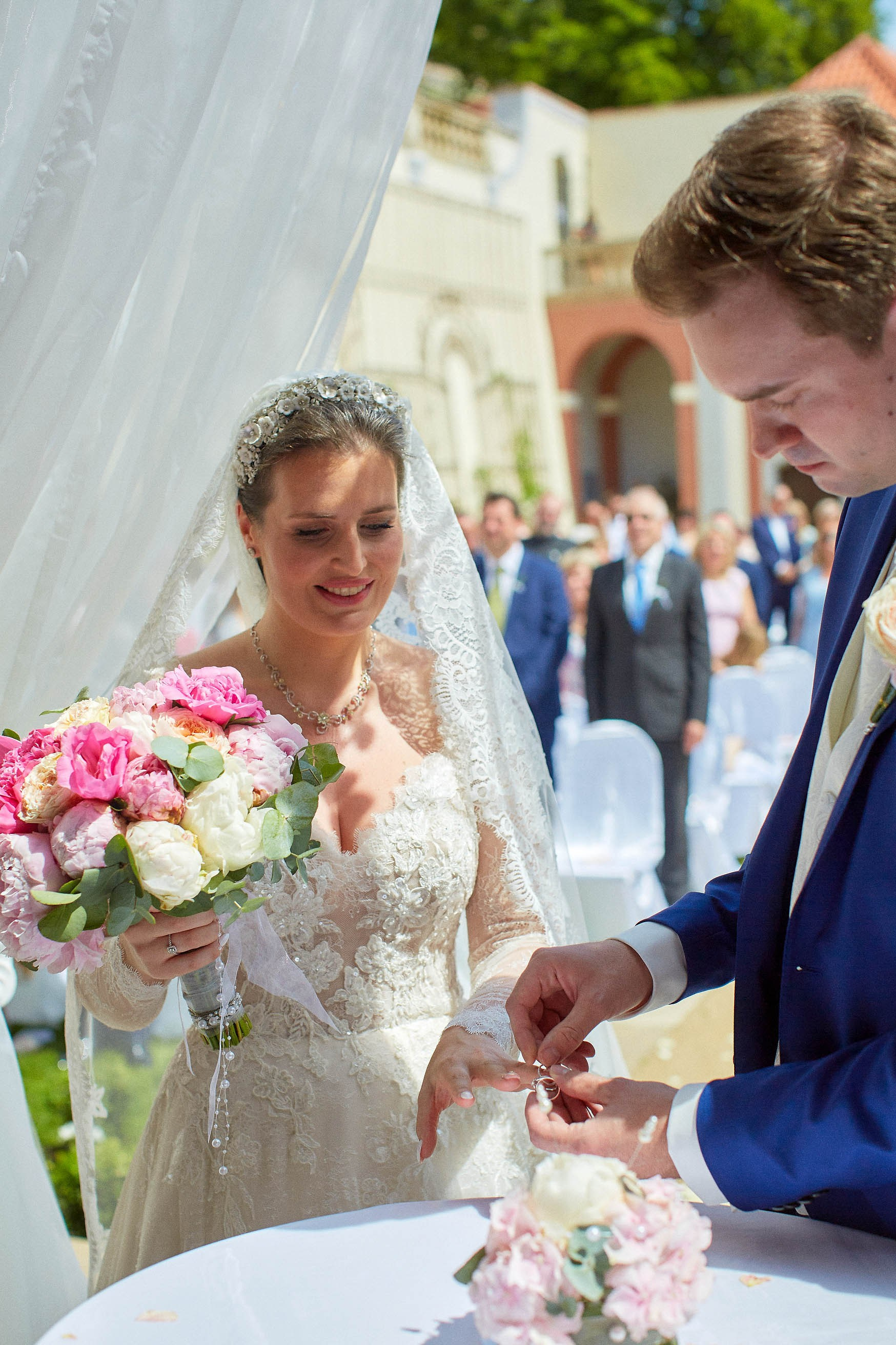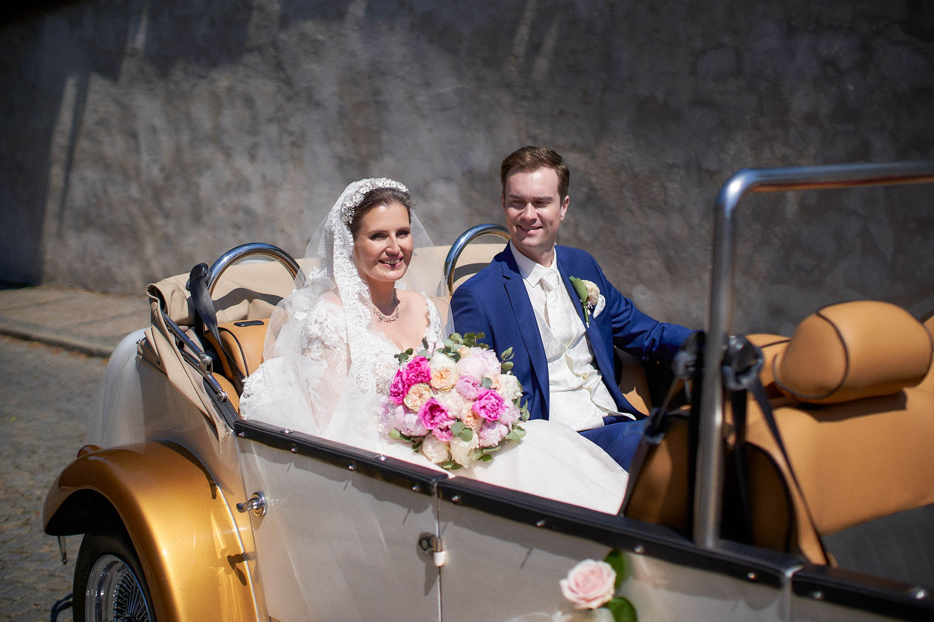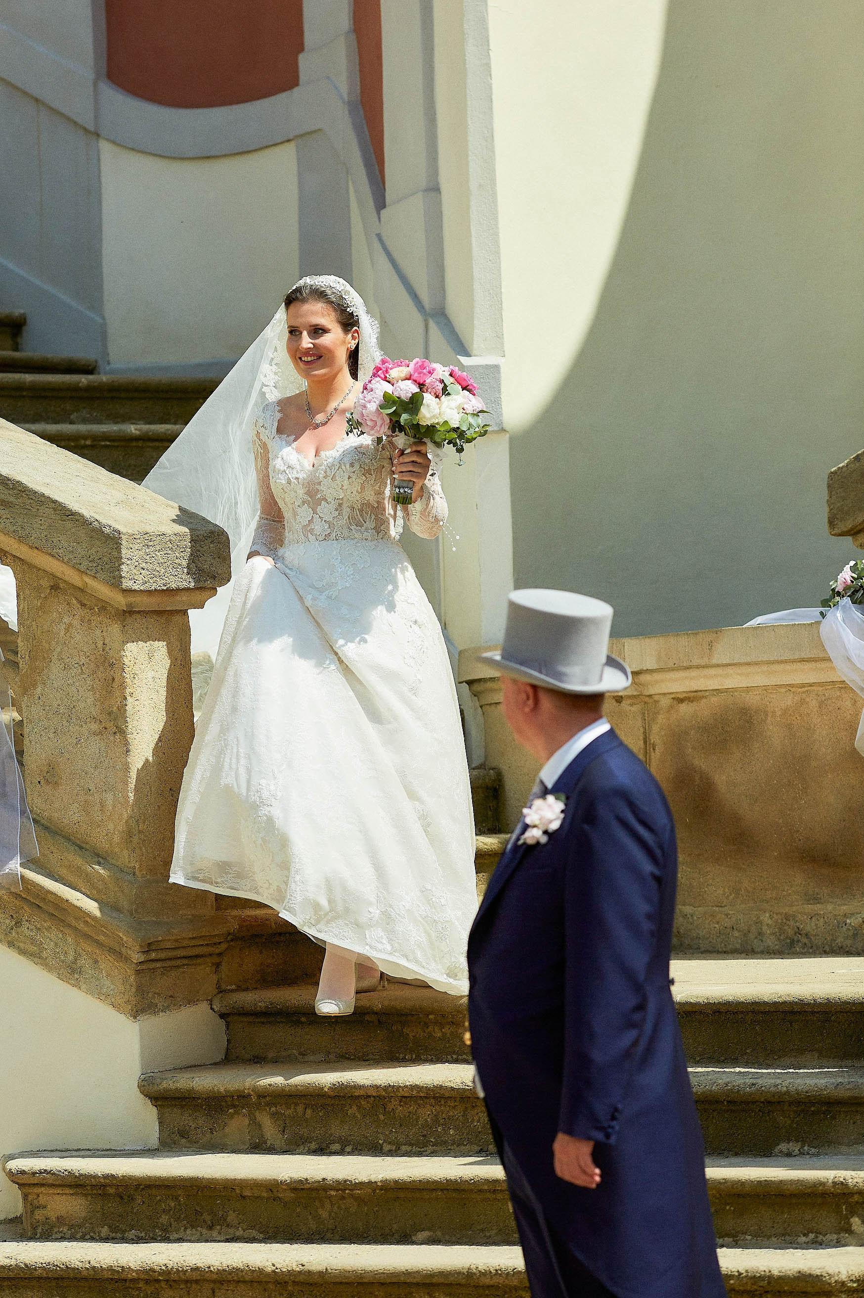 As the celebration moved to the charming Villa Richter, nestled among vineyards with panoramic views over the city, joy filled the air with laughter and toasts. Later, slipping away from their guests, Adéla and Matthias stole intimate moments gazing at the sparkling lights below—a picture-perfect close to their day.
