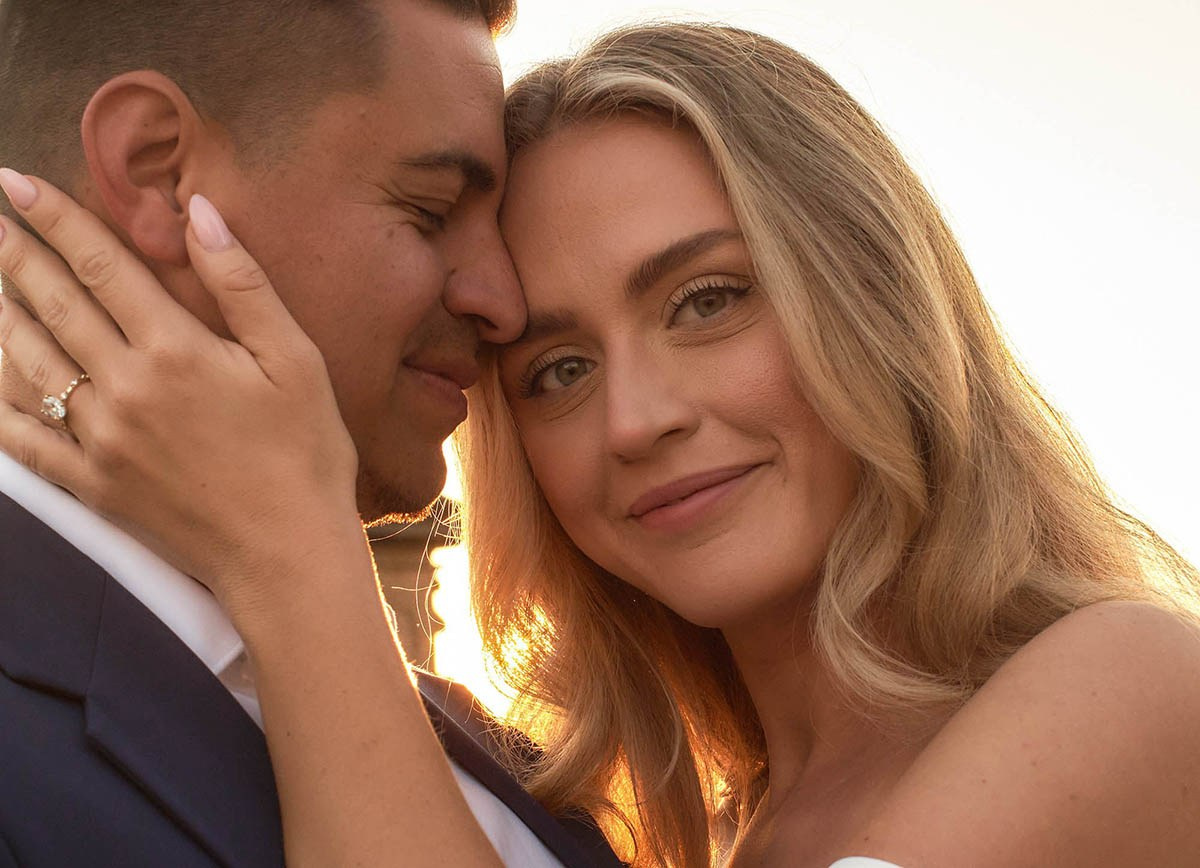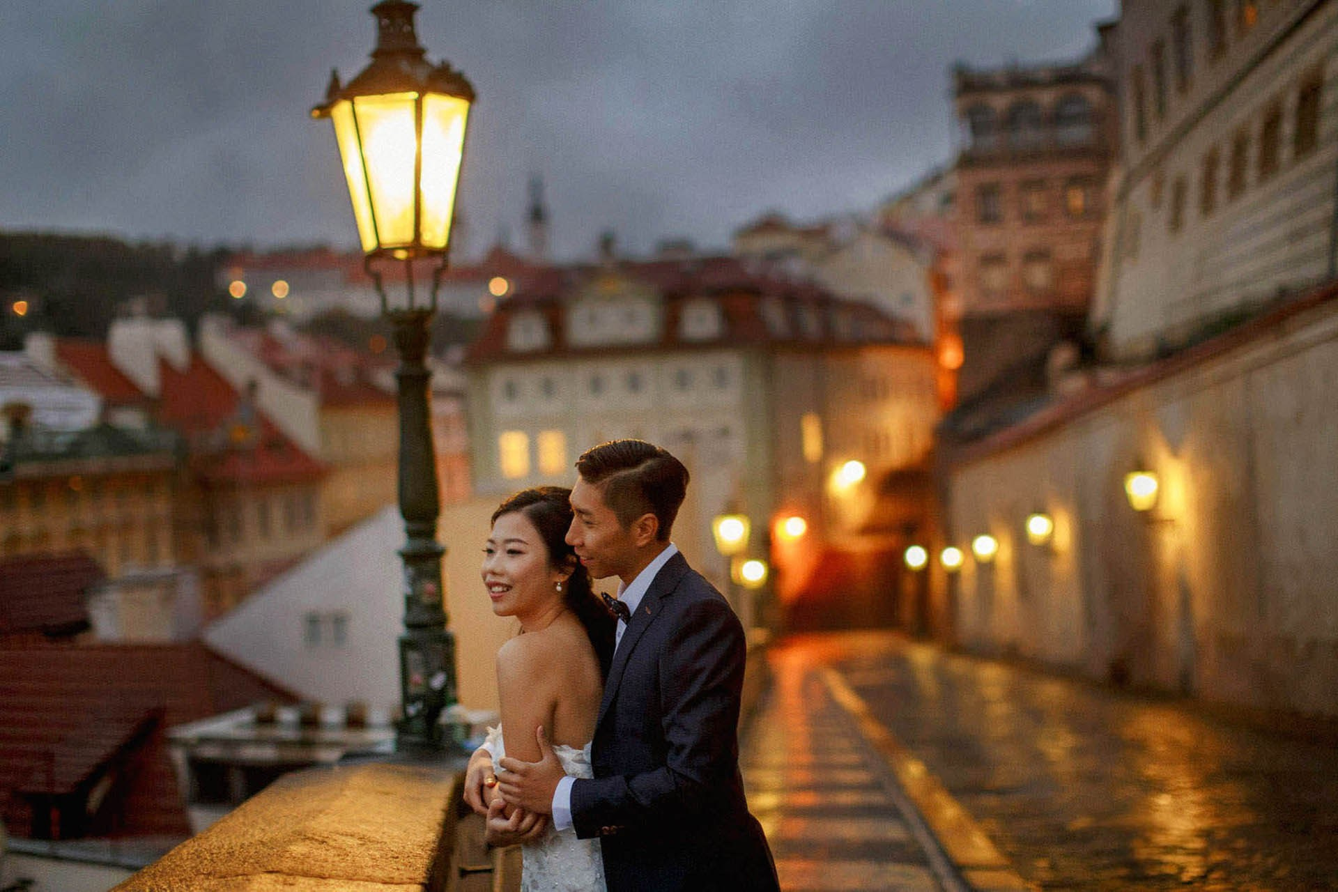 The stylish Singapore newlyweds bathed in golden light atop Charles Bridge tower